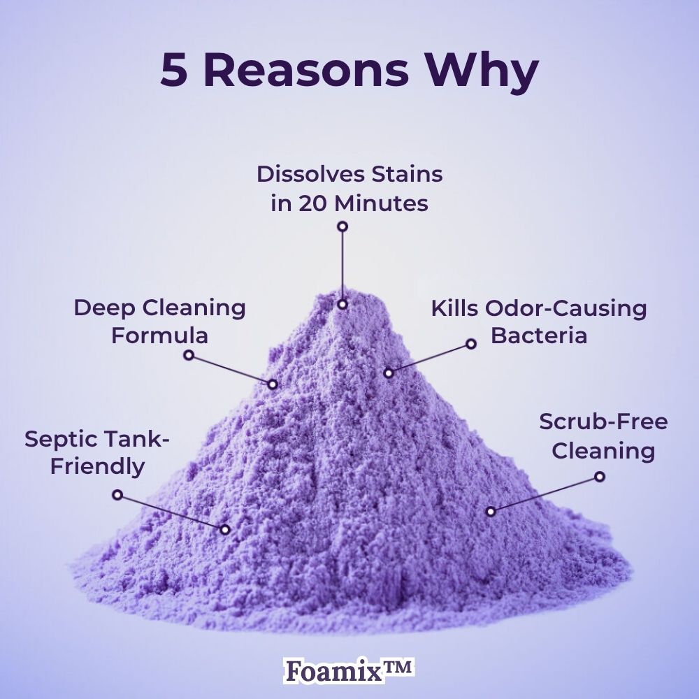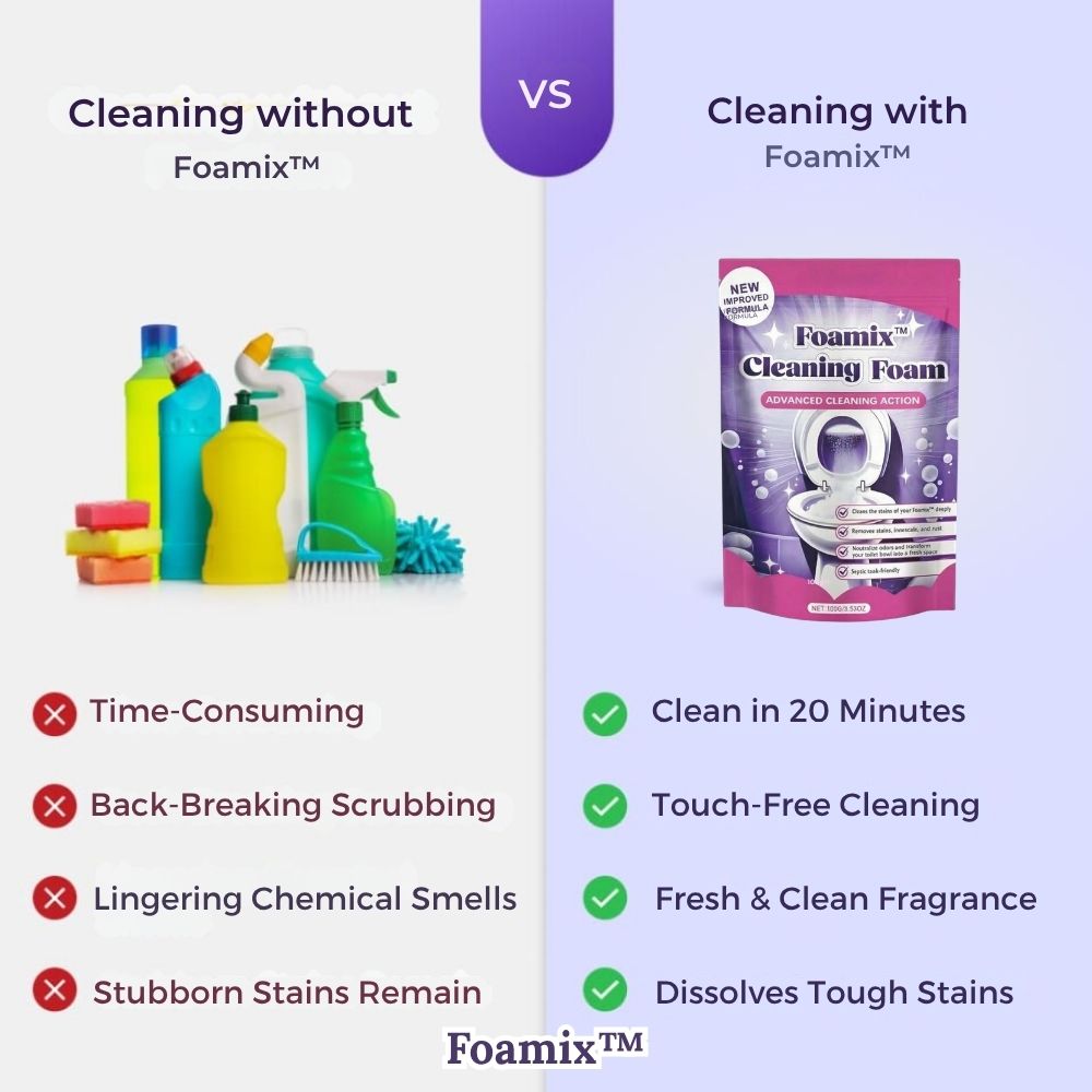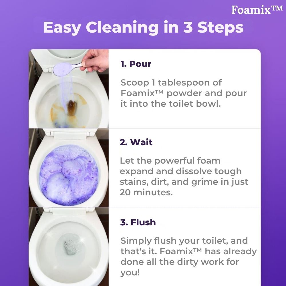 Foamix™ verwandelt Ihre Reinigungsroutine, indem es Flecken, Kalkablagerungen und Schmutz sofort abbaut, sodass Ihre Toilette frisch, hygienisch und wie neu ist – ohne die übliche Anstrengung.