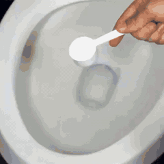 2️⃣ Streuen Sie in die Toilettenschüssel Streuen Sie das Pulver direkt in die Toilettenschüssel, einschließlich unter dem Rand, wo sich der Schmutz am meisten ansammelt.