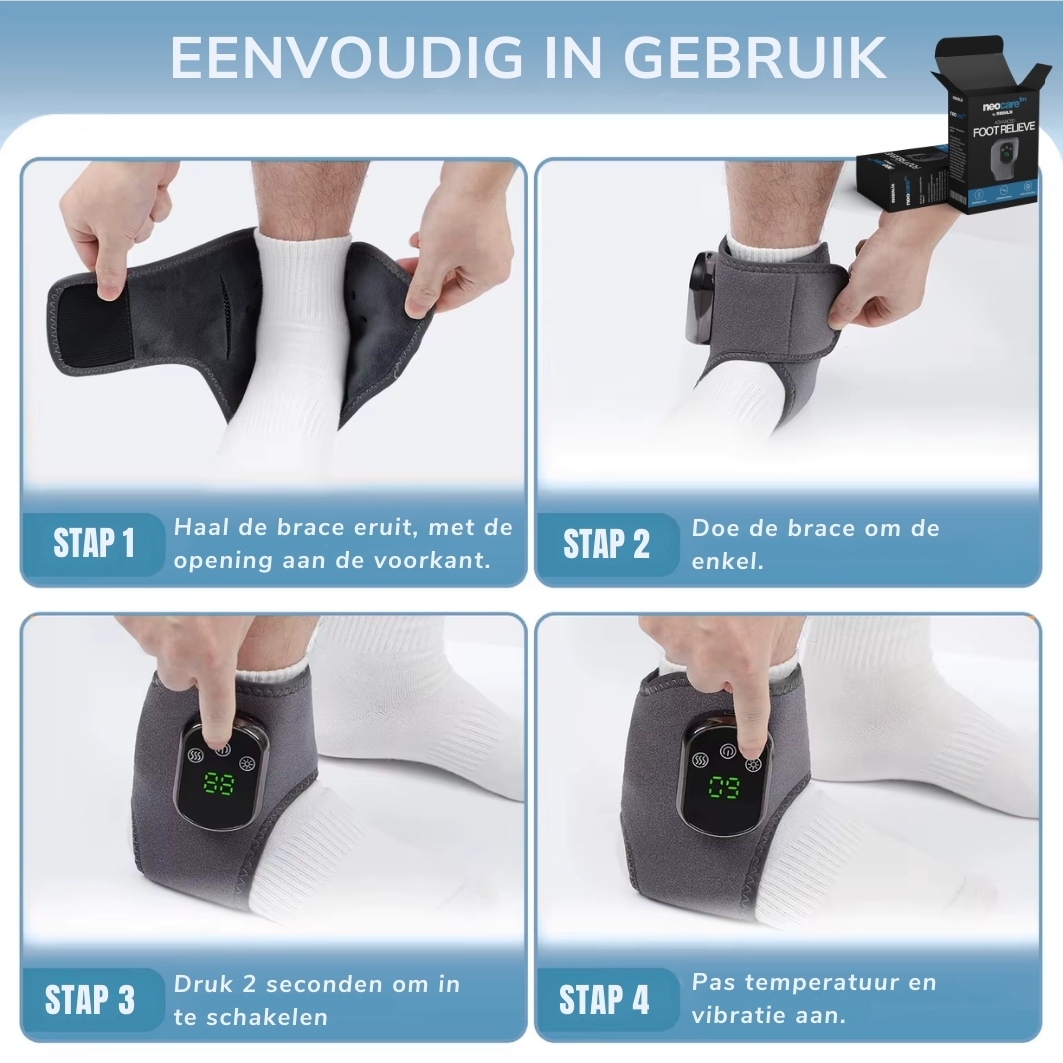 NeoCare™ arbeitet mit einer Kombination aus: 🔥 Beruhigender Wärme zur Entspannung der Muskeln 💆 Sanfter Massage zur Linderung von Spannungen 🦶 Anregender Entspannung für ein Gefühl von Komfort Dies sorgt für ein angenehmes und entspannendes Erlebnis, das du ganz einfach zu Hause nutzen kannst.